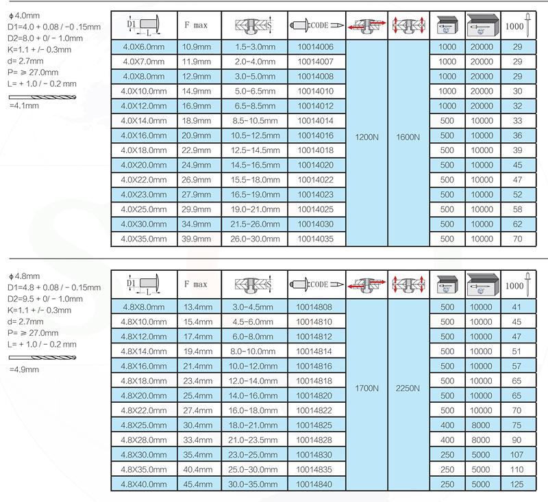 ISO15977 - 2002 铝帽铁芯开口型圆头抽芯铆钉